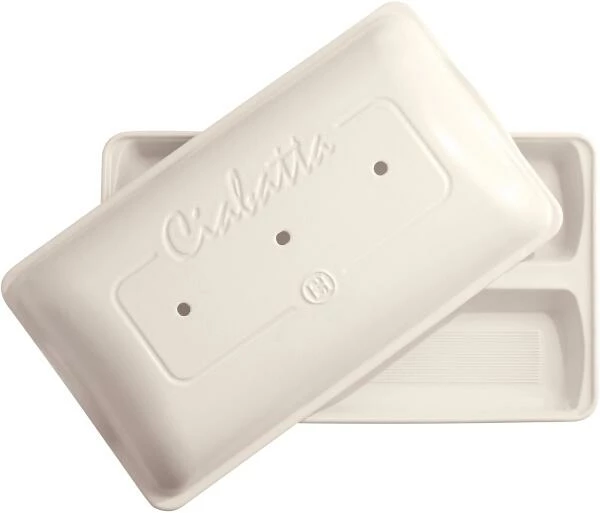 Das Set von Emile Henry bietet die Möglichkeit für 2 Ciabattas mit bis zu 250 g pro Stück. So klappen gut geformte und gleichmäßige Brote ganz leicht. Der gewölbte Deckel hilft außerdem die Feuchtigkeit zu kontrollieren und die ideale Konsistenz zu gewährleisten.