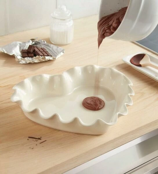 Ein guter Obstkuchen, der auf der Zunge zergeht, muss sanft und gleichmässig durchgebacken werden, ohne auszutrocknen: das Geheimnis – die Keramik-Form! Schneiden und servieren Sie den Kuchen gleich in der Form, noch lauwarm. Dies hier ist die klassische Form für einen saftigen Rührkuchen in Herzform. Hervorragend geeignet auch für einen guten Obstauflauf, Zwetschgen- oder Kirschkuchen, Kartoffeltorte mit Schinken und Käse. Oder auch einmal als hübsche Beilagenschüssel! Ihr Kuchen wird darin gleichmäßig durch gebacken. Für Gratins, Aufläufe und Lasagne ebenso gut geeignet wir für Obst- oder Schokoladenkuchen. Die Backform ist schnittfest und leicht zu reinigen oder einfach als ausgefallene, fröhliche Servierplatte für den gedeckten Tisch zu verwenden.