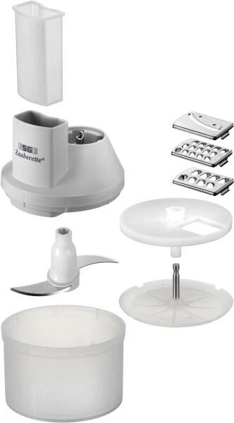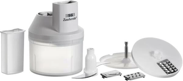 ESGE Zauberette. Die Zauberette von ESGE ist die ideale Ergänzung zum ESGE-Zauberstab. Mit den verschiedenen Aufsätzen wird der Stabmixer im Handumdrehen zur universellen Küchenmaschine.