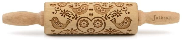Folkroll Teigrolle Folk Tauben. Mehr als das klassische Nudelholz, nämlich eine Teigrolle mit tollen Mustern und Motiven in 3D-Optik. In 2 Größen erhältlich.