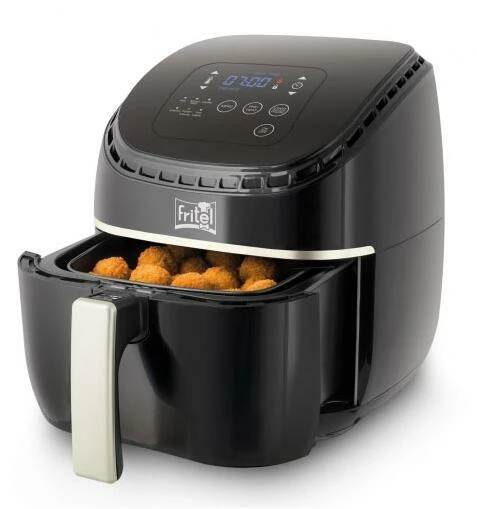 Fritel Heißluftfritteuse SnackTastic 4802, 3,2 Liter und 1.450 Watt. Die Fritel SnackTastic 4802 verfügt über die Hot Air Technologie, d.h. Aperitifhäppchen, Frikadellen und Kroketten können beispielsweise mit bis zu 80% weniger Fett zubereitet werden. Die gesündere Variante zur Fritteuse.