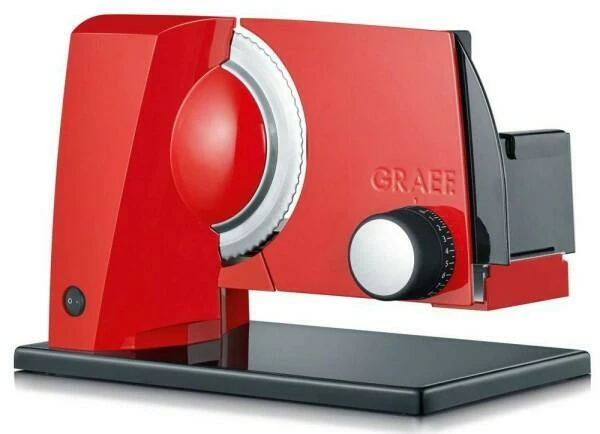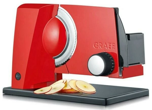 GRAEF Allesschneider Sliced Kitchen SKS 11003 in rot. Schnell und präzise verwandelt der neue Allesschneider von GRAEF alle Ihre Zutaten in hauchdünne Scheiben, wodurch sich die Aromen noch intensiver entfalten können. Zusätzlich glänzt der Allesschneider durch Sicherheit, Qualität, Komfort sowie raffinierten, innovativen Details. Das ideale Einsteiger-Modell im edlen Design – Made in Germany.