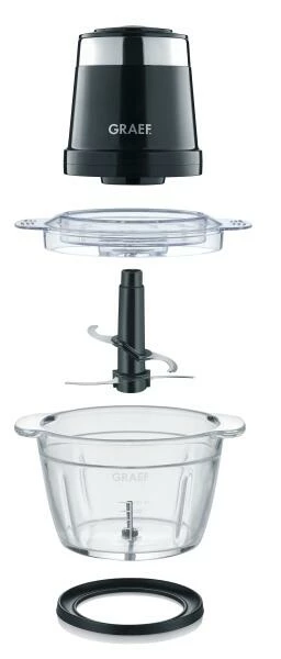 GRAEF Zerkleinerer in schwarz. Schneller und effizienter Zerkleinerer mit vierflügeligem Edelstahlmesser. Inklusive 1 Liter-Behälter aus Glas.
