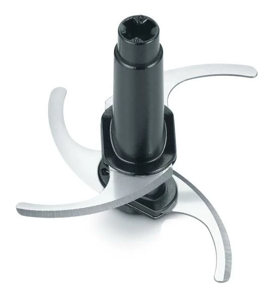 Das vierflügelige Edelstahlmesser zerkleinert Gemüse, Nüsse, Käse, Schokolade und vieles mehr mühelos und effizient. Im Set ist ein Glasbehälter mit 1 Liter Fassungsvermögen enthalten, der über einen Antirutschring verfügt.