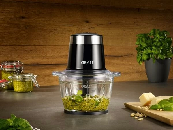 Der GRAEF Zerkleinerer verfügt über einen kraftvollen 500 Watt-Motor, ist mit nur einer Hand zu bedienen und eignet sich zum Hacken, Schneiden und Mixen von Lebensmitteln. Er ist besonders für die Zubereitung von Babynahrung geeignet.