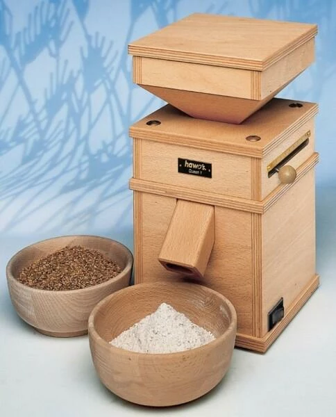 Die Getreidemühlen Billy, Queen und Mühle 1 präsentieren sich in gleicher Form aus unterschiedlichem Material. Die hawos Mühle 1 wird aus massivem Buchenholz gefertigt, Leinölfirnis schützt die Oberfläche und bringt die lebendige Maserung des vollen Holzes optimal zur Geltung. Multiplex findet bei den Gehäusen der Modelle Billy und Queen Verwendung. Die spezielle Verleimung der einzelnen Schichten des Gehäuses sorgt für besonders hohe Stabilität. Optisch präsentiert sich Multiplex mit avantgardistischer Zurückhaltung – in Birke bei Billy, in Buche bei Queen.