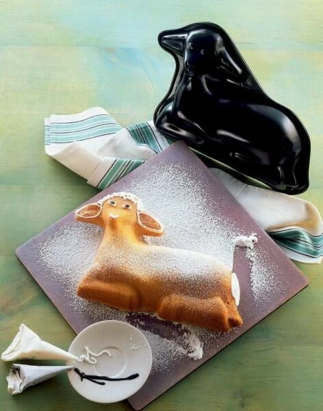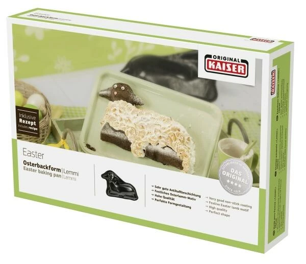 Kaisers Motivbackform “Lemmi” mit 0,75 Liter Füllmenge kann das eigene Osterlamm gebacken werden. Kunstvoll verziert erfreut es auf dem Kaffeetisch kleine und große Gäste.