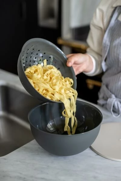 koziol Schüssel PALSBY in grau. Der Seiher aus recyceltem Kunststoff ist made in Germany. In 2 Größen verfügbar.