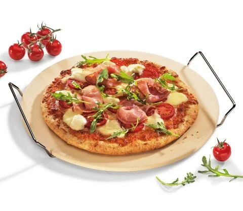 Küchenprofi Pizza-Stein rund, 30 cm mit Untersatz. Ideal für die Zubereitung knuspriger Steinofenpizza.