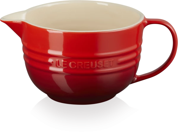 Wie alle Le Creuset Steinzeug-Produkte ist auch die Rührschüssel leicht zu reinigen. Steinzeug ist, wie Porzellan, feinkeramisch und gehört zu der qualitativ hochwertigen Kategorie dichter Tonwaren. Im Gegensatz zum namensähnlichen Steingut hat Steinzeug eine deutlich bessere Beständigkeit, Festigkeit und Dichtigkeit des Materials. Die hohen Brenntemperaturen von bis zu 1300 Grad Celsius und die geringe Porosität gewährleisten eine dauerhafte Beanspruchung ohne Glasurrisse.