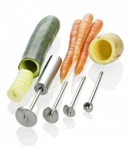 Gemüse Twister EDS, 5teilig. Inklusive Griff und vier verschiedenen Edelstahlaufsätzen zum Aushöhlen von Obst und Gemüse.