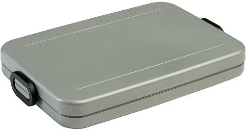 Lunchbox Take a Break flat in der Farbe Silber (silberfarben). Diese flache silberne Box von Mepal passt perfekt in eine Laptoptasche oder einen Rucksack und ist geeignet für maximal 4 Butterbrote.