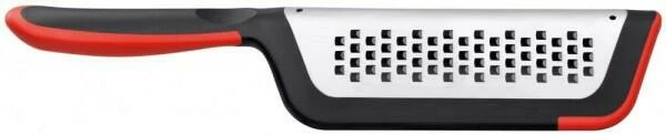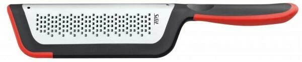Dass die superscharfe Reibe jeden Raspel-Vorgang erleichtert, liegt an der innovativen Gestaltung. Mit der V-Form, der schwarzen Kunststoff-Umrahmung und dem ergonomischen Griff ist das Gourmet-Werkzeug angenehm im Umgang: Leuchtrot markierte Bereiche an Griff und Aufstellfläche sind rutschfest gestaltet und verhindern tückisches Weggleiten.