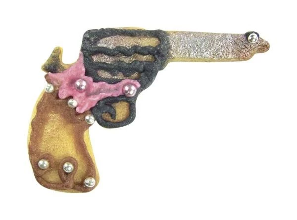 Hände hoch, das ist ein Überfall! Der Revolver ist mit Plätzchenteig geladen! Geben Sie die Keksdose heraus, dann passiert auch niemandem etwas!