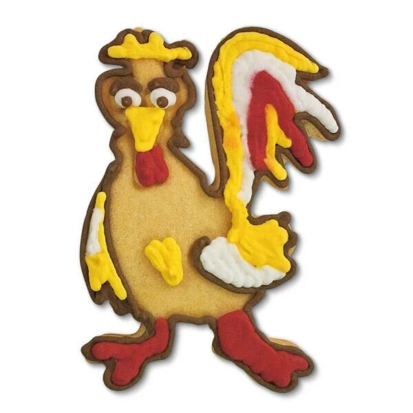 Mit diesem Präge-Ausstecher können Sie im Handumdrehen einen stolzen Gockel formen – komplett mit Krallen, Flügeln, Schnabel, Augen, Kamm und Hahnenfedern.