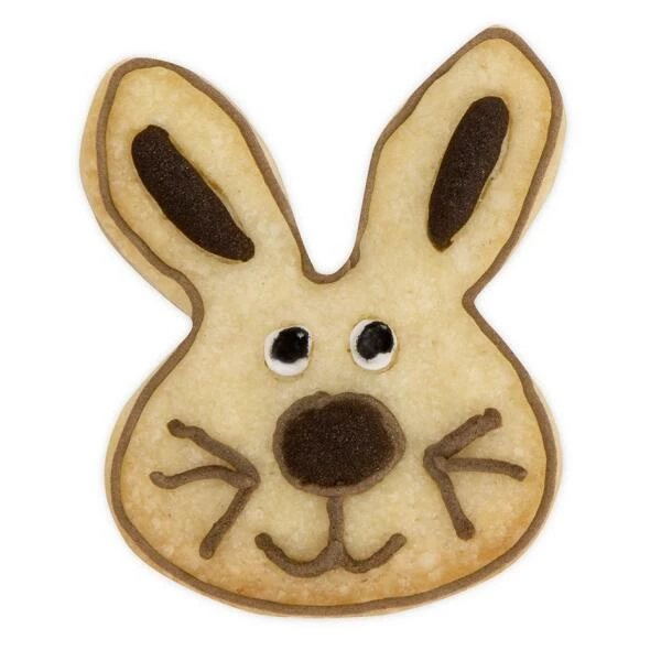 Das Hasengesicht kommt mit vorgeprägten Ohren, Augen, Stupsnase, Mund und Barthaaren. Nach dem Ausstechen kann es ganz einfach bemalt werden!