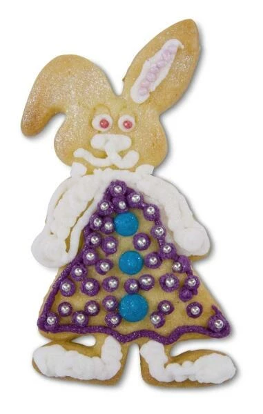 Der Präge-Ausstecher formt nicht nur ein putziges Hasenmädchen, sondern prägt auch schon das Gesicht und das Kleidchen vor.