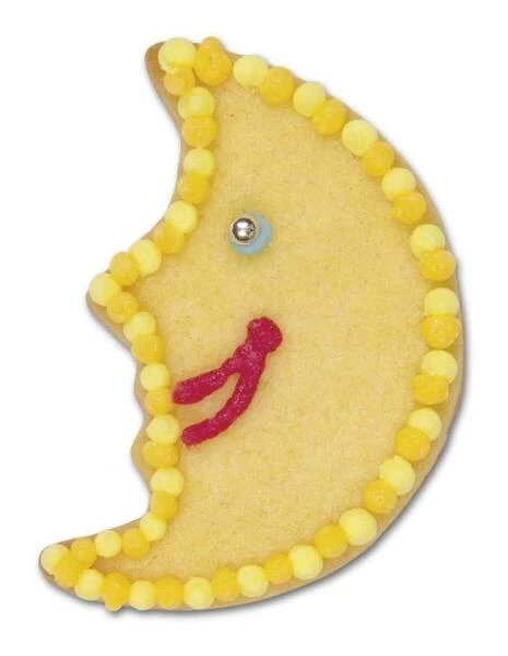 Neben dem Weihnachtsstern ist in der Keksschale immer noch Platz für den Mond. Der Ausstecher macht ihm gleich noch ein lachendes Gesicht mit dran!