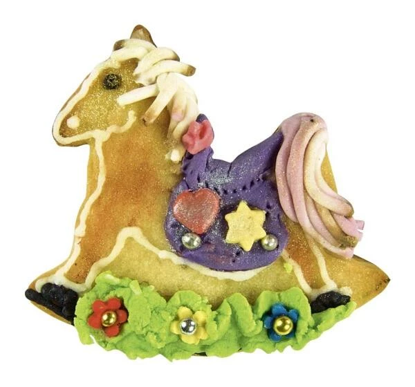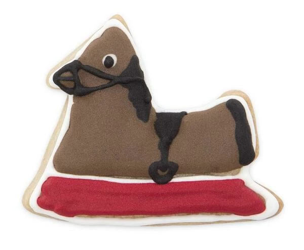 Das Schaukelpferd ist als Kinderspielzeug nicht wegzudenken. Dieses Plätzchenmotiv gehört aber auf alle Fälle auf den vorweihnachtlichen Plätzchenteller.