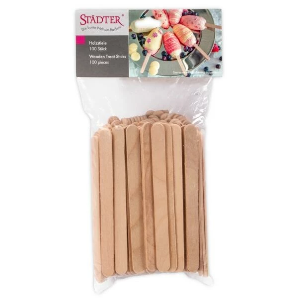 Die Holzstiele sind aus unbehandeltem Holz hergestellt. Zum einmaligen Gebrauch.