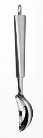 Eisportionierer aus Edelstahl mit praktischer Aufhängöse.