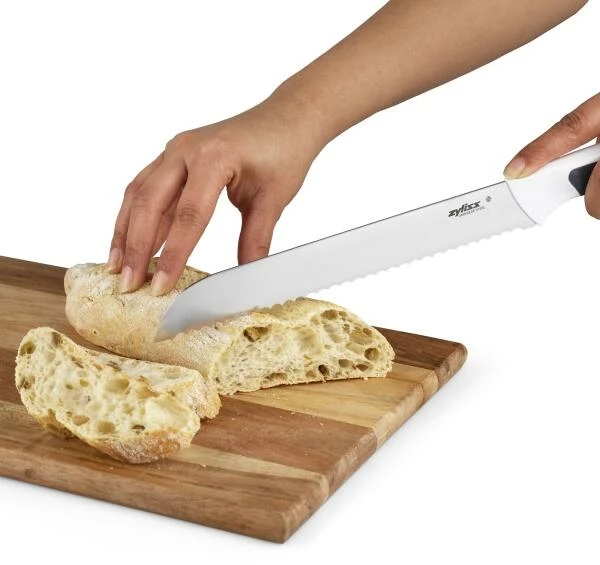 Die 20,5 cm lange Klinge mit Wellenschliff ist so konzipiert, dass sie sowohl auf harten als auch auf weichen Oberflächen perfekt funktioniert und man damit die perfekte Scheibe erzielt, ohne das Schnittgut zu quetschen oder zerbröseln. Der ergonomische Griff wurde für höchsten Komfort beim täglichen Gebrauch entwickelt. Er liegt perfekt in der Hand und verfügt über einen flachen Kropf, der beim Gebrauch einen festen Halt ermöglicht. Die Fingerkerbe an der Oberseite des Griffs bietet eine bequeme Position zum Platzieren des Zeigefingers beim präzisen Schneiden.